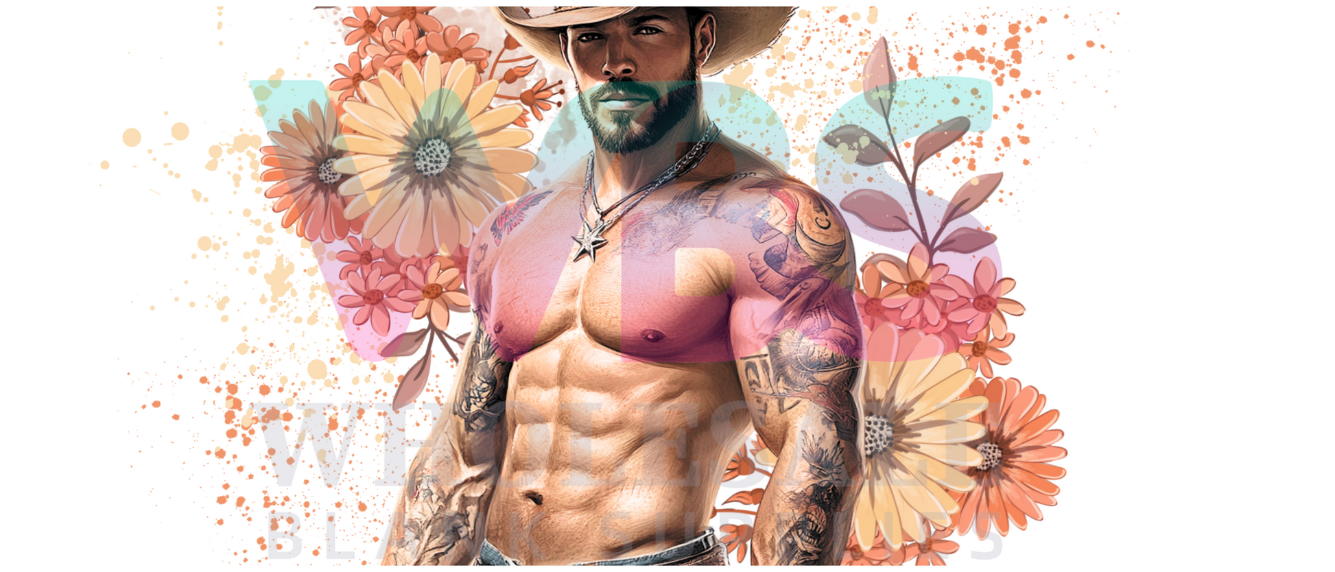16oz UV DTF Libbey Wrap Tatt Boy Cowboy orange flowers #324
