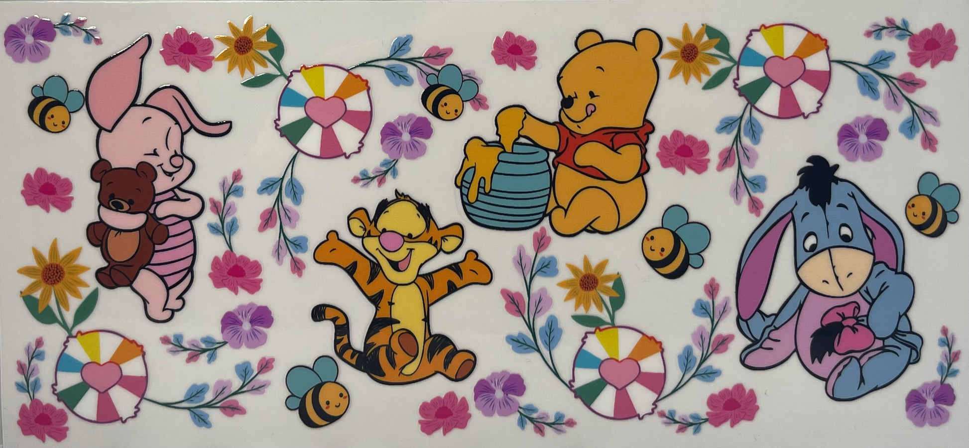 16oz UV DTF Libbey Wrap Winnie the Pooh flowers bees #A204