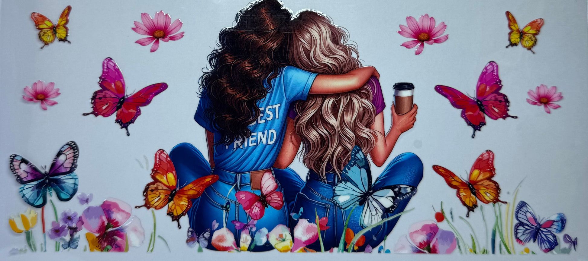 16oz UV DTF Libbey Wraps best friends butterfly flowers #658